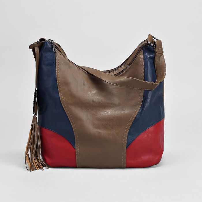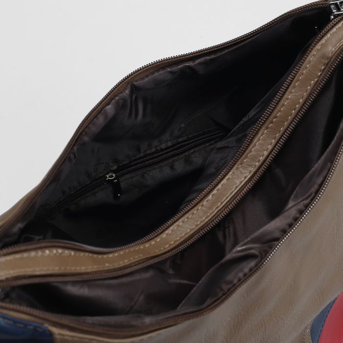 Сумка женская на молнии, 2 отдела, наружный карман, цвет красный/синий/коричневый