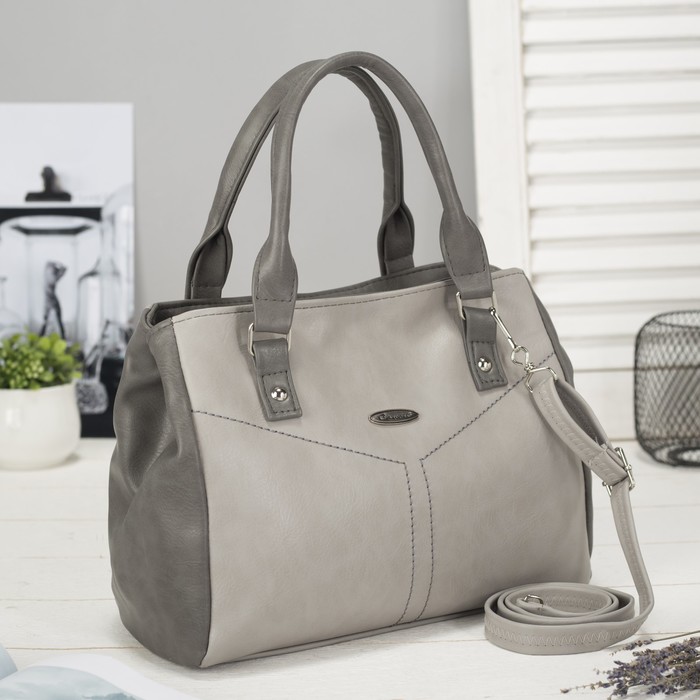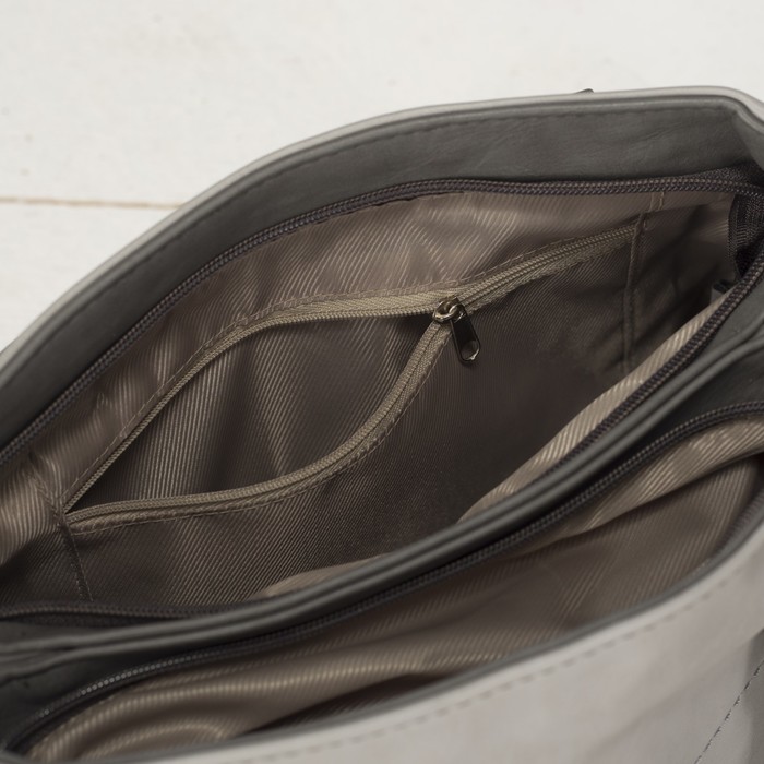 Сумка женская на молнии, 2 отдела, наружный карман, цвет серый