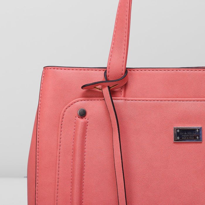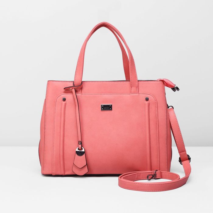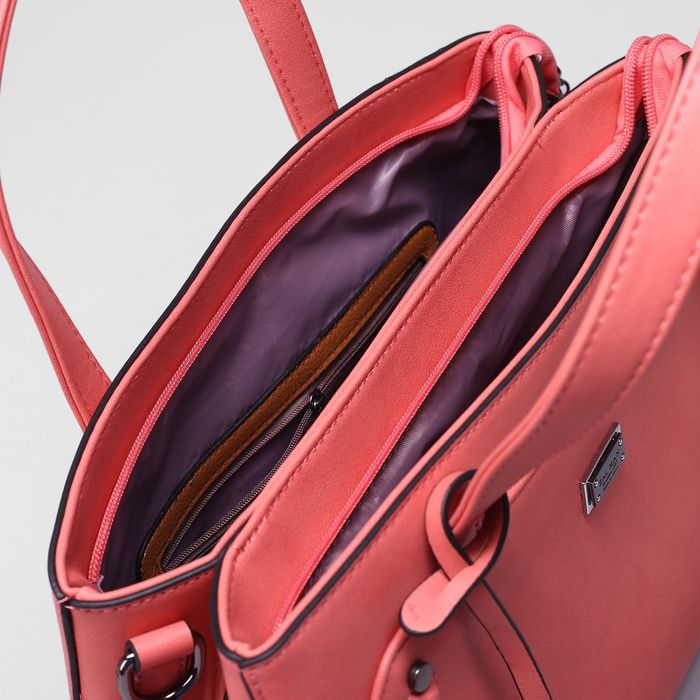 Сумка женская на молнии, 2 отдела, наружный карман, длинный ремень, цвет коралловый