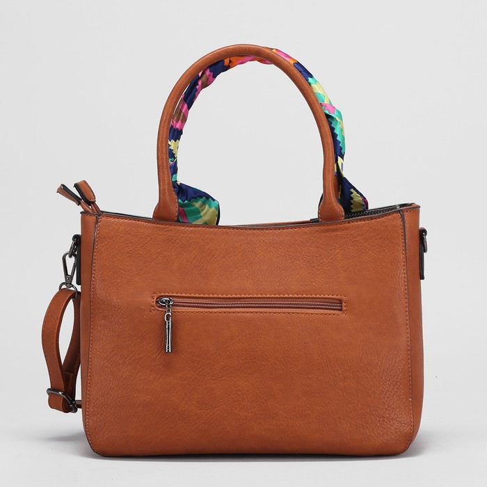Сумка женская на молнии, 2 отдела, наружный карман, длинный ремень, цвет коричневый