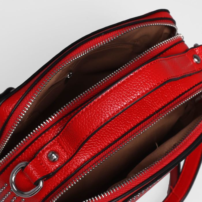 Сумка женская на молнии, 2 отдела, наружный карман, длинный ремень, цвет красный