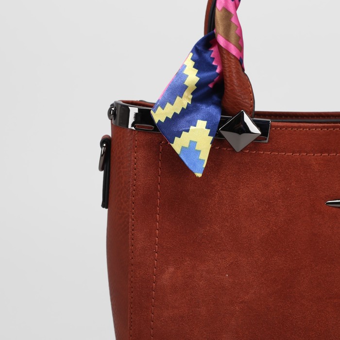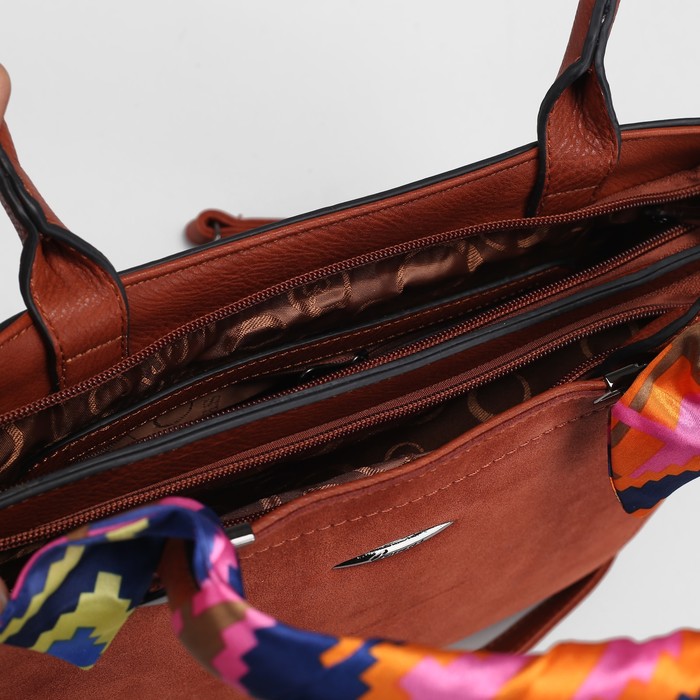 Сумка женская на молнии, 2 отдела, наружный карман, длинный ремень, цвет рыжий