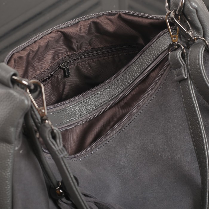 Сумка женская на молнии, 2 отдела, наружный карман, длинный ремень, цвет серый