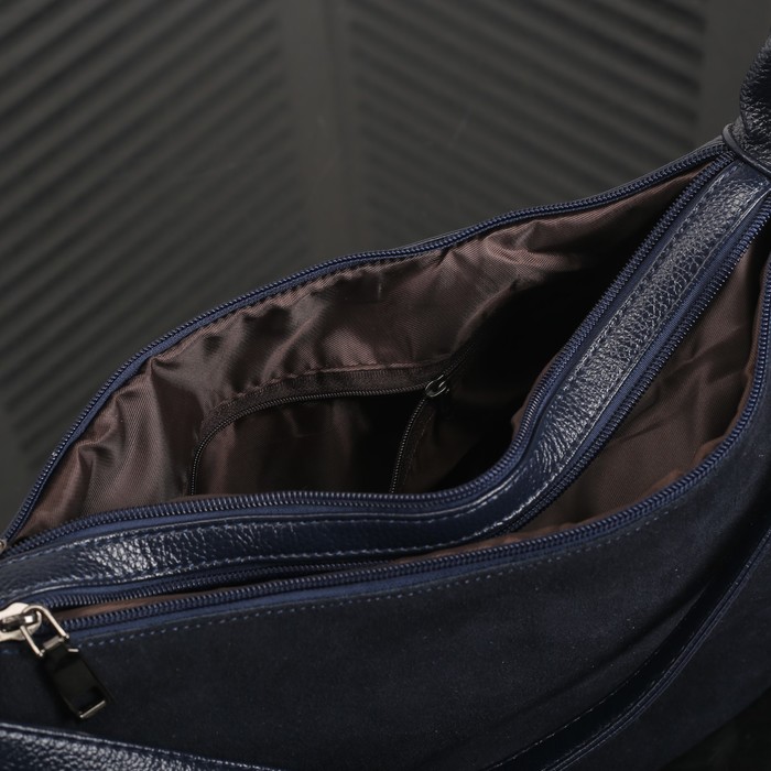 Сумка женская на молнии, 2 отдела, наружный карман, длинный ремень, цвет синий
