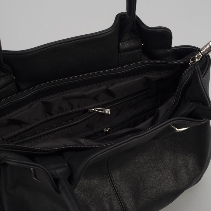 Сумка женская на молнии, 2 отдела с перегородкой, 1 наружный карман, чёрная