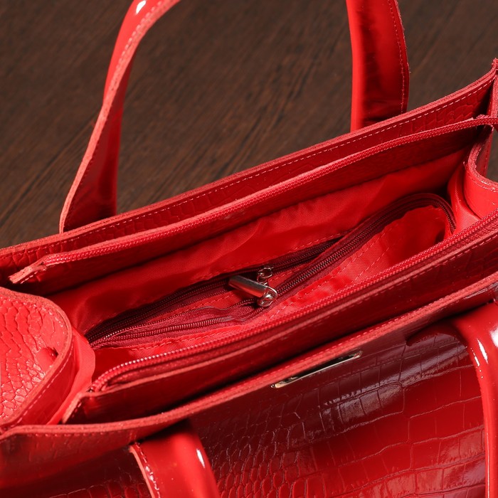 Сумка женская на молнии, 2 отдела с перегородкой, наружный карман, цвет красный