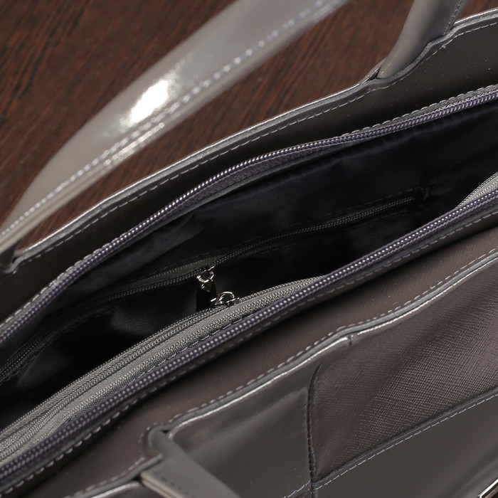 Сумка женская на молнии, 2 отдела с перегородкой, наружный карман, цвет тёмно-серый сафьян