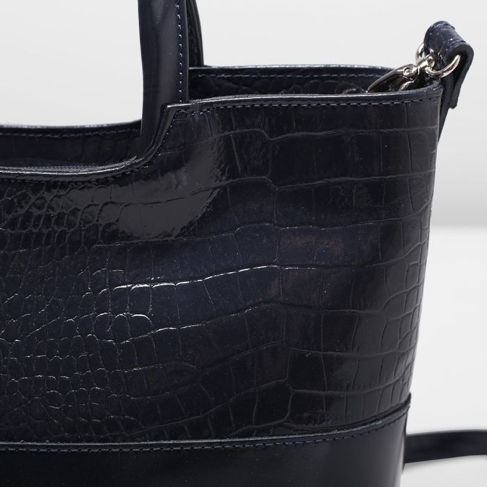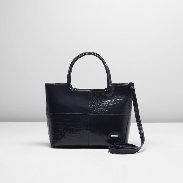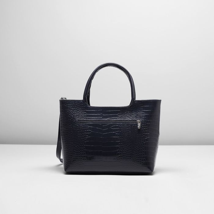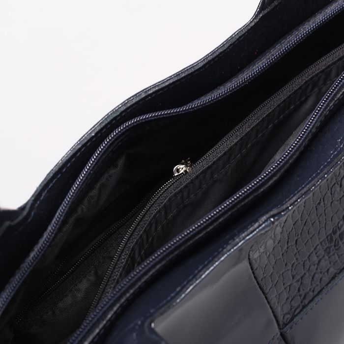Сумка женская на молнии, 2 отдела с перегородкой, наружный карман, кайман, цвет тёмно-синий