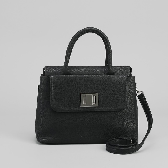 Сумка женская на молнии, 3 отдела, 1 наружный карман, длинный ремень, чёрная