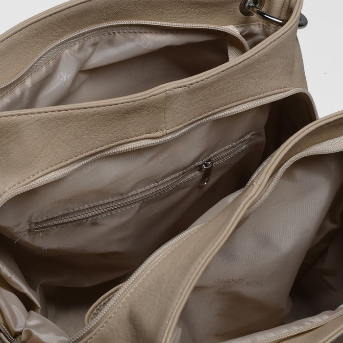 Сумка женская на молнии, 3 отдела, 3 наружных кармана, цвет бежевый