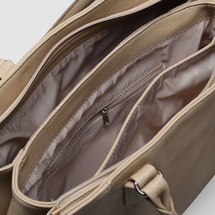 Сумка женская на молнии, 3 отдела, наружный карман, цвет бежевый