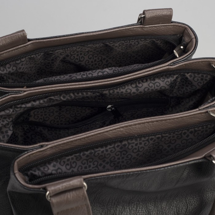 Сумка женская на молнии, 3 отдела, наружный карман, цвет чёрный