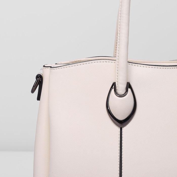 Сумка женская на молнии, 3 отдела, наружный карман, длинный ремень, цвет белый