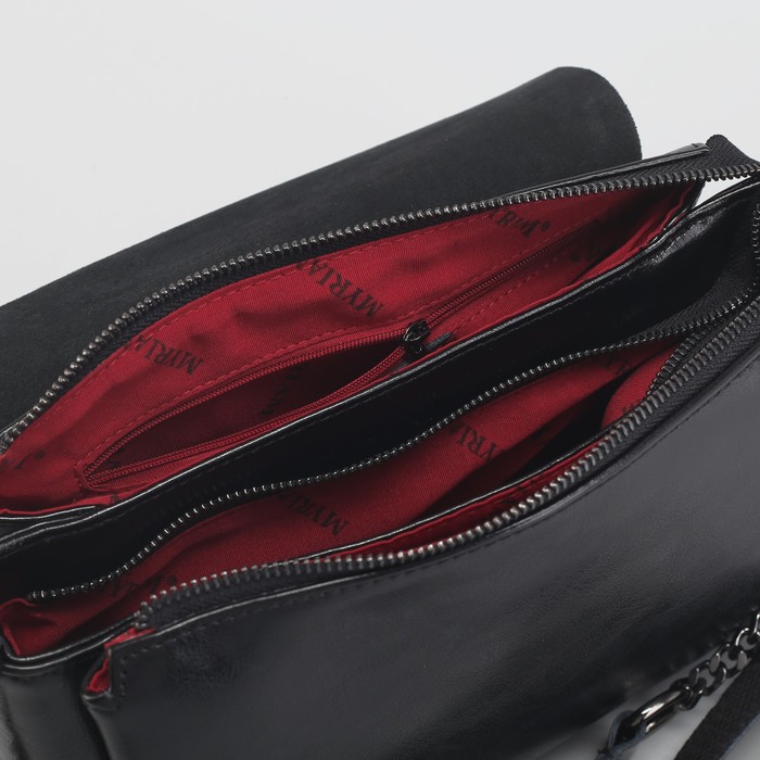 Сумка женская на молнии, 3 отдела, наружный карман, длинный ремень, цвет чёрный