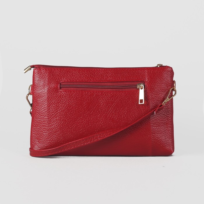 Сумка женская на молнии, 3 отдела, наружный карман, длинный ремень, цвет красный