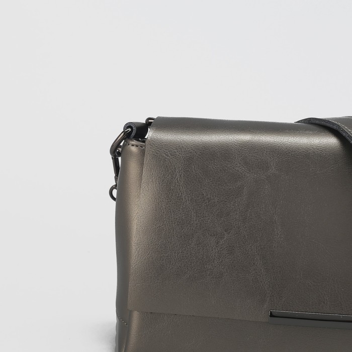Сумка женская на молнии, 3 отдела, наружный карман, длинный ремень, цвет серебристый