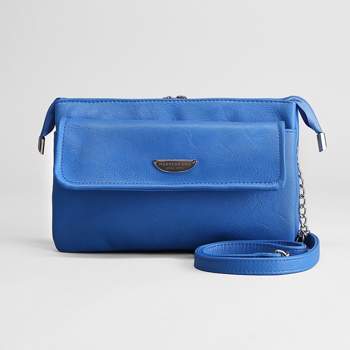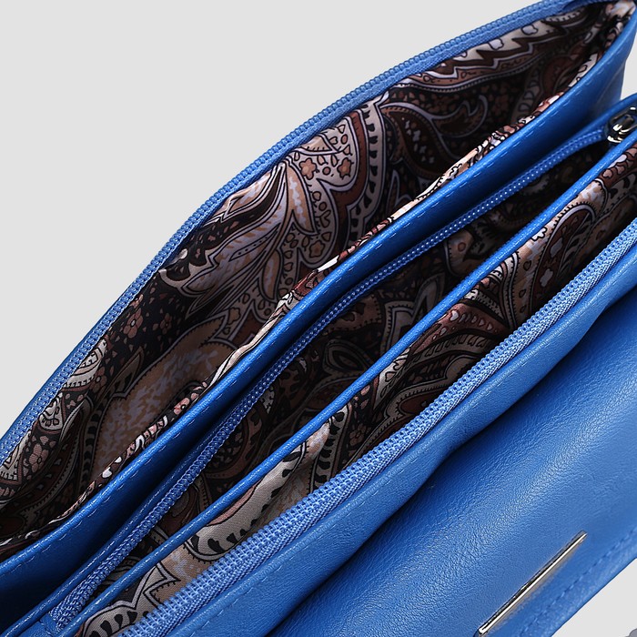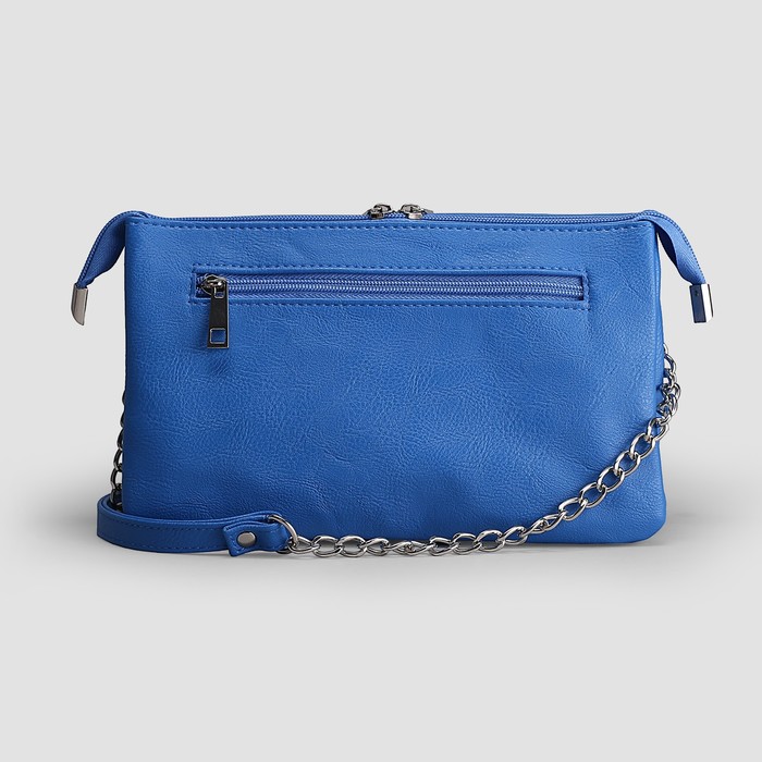 Сумка женская на молнии, 3 отдела, наружный карман, длинный ремень, цвет синий