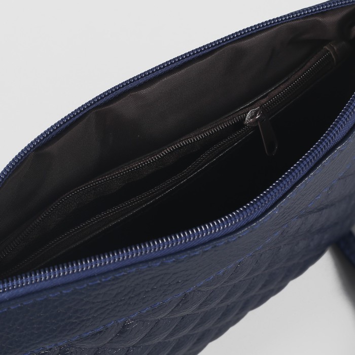 Сумка женская на молнии, 3 отдела, наружный карман, длинный ремень, цвет синий