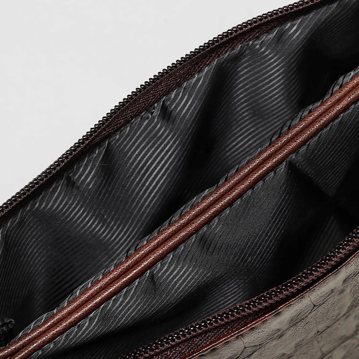 Маленькие, казалось бы, незначительные элементы зачастую завершают, дополняют образ, подчёркивают статус, стиль и вкус своего обладателя. Сумка женская на молнии, 3 отдела, наружный карман, крокодил, цвет коричневый — одна из подобных деталей. Это вещь достойного качества, которая может стать прекрасным подарком по любому поводу.