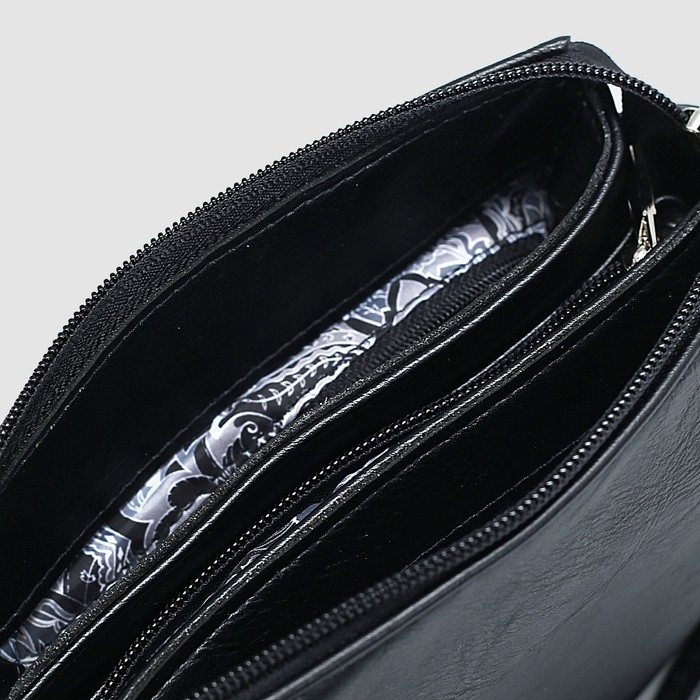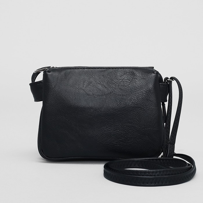 Сумка женская на молнии, 3 отдела, наружный карман, регулируемый ремень, цвет чёрный