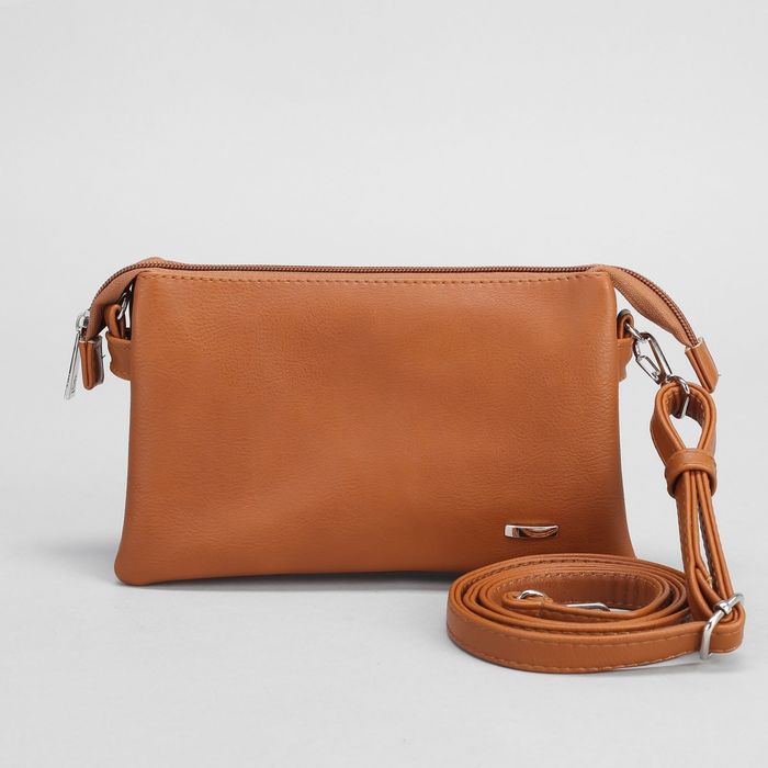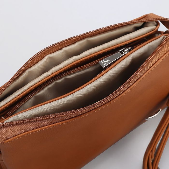 Сумка женская на молнии, 5 отделов, наружный карман, регулируемый ремень, цвет рыжий