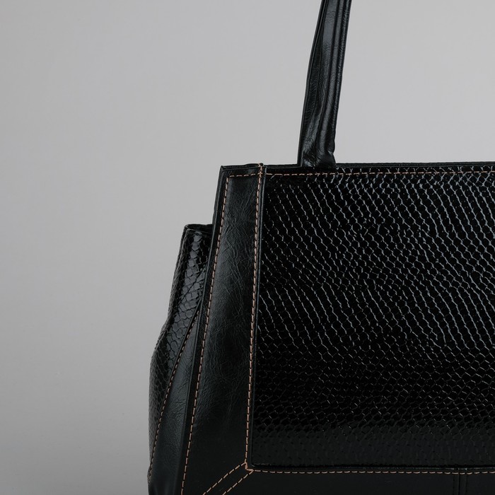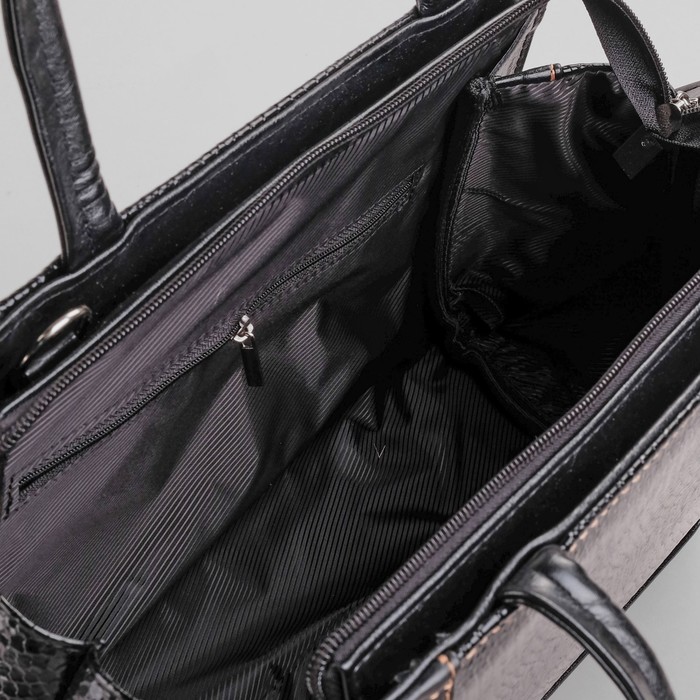 Сумка женская на молнии, 6 отделов, наружный карман, цвет чёрный