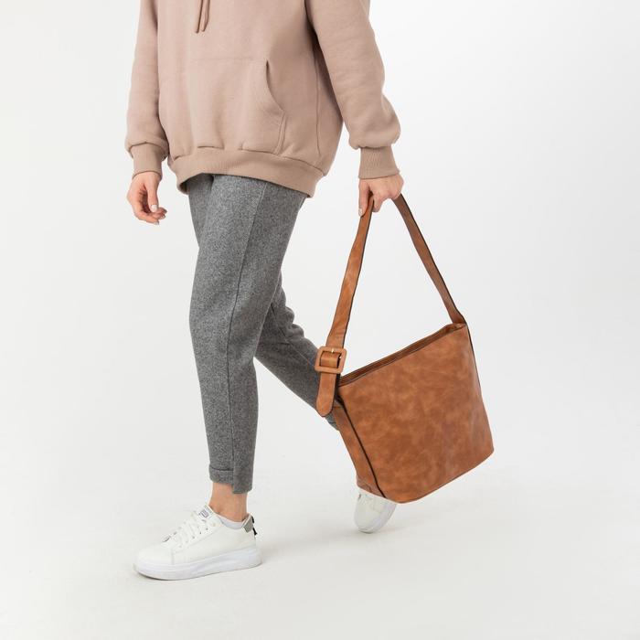 Сумка женская на молнии "Аризона", 1 отдел, регулируемый ремень, коричневая