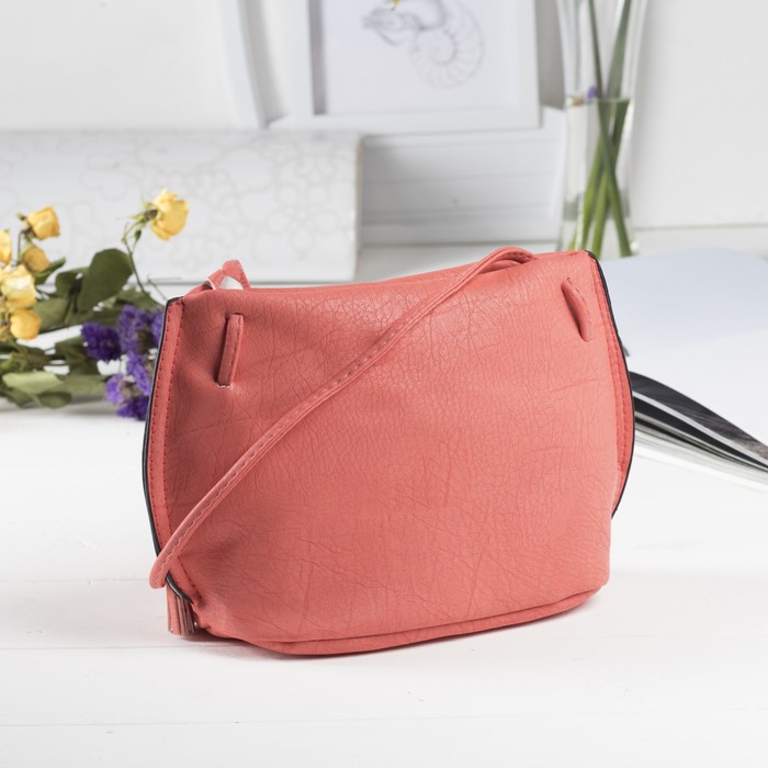 Сумка женская на молнии "Берта", 1 отдел, длинный ремень, цвет коралловый