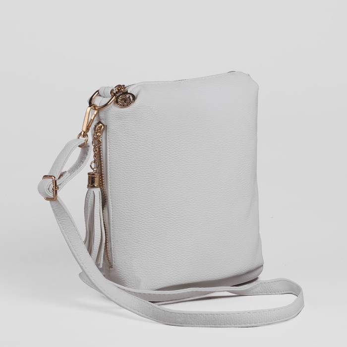 Сумка женская на молнии "Элен", 1 отдел, 2 наружных кармана, длинный ремень, белая