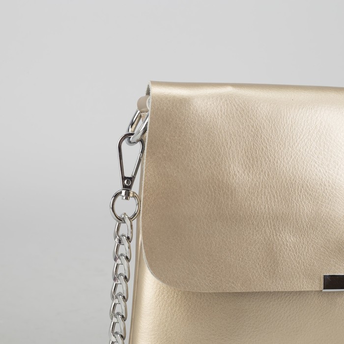 Сумка женская, отдел, 2 наружных кармана, цепь, длинный ремень, цвет золотой