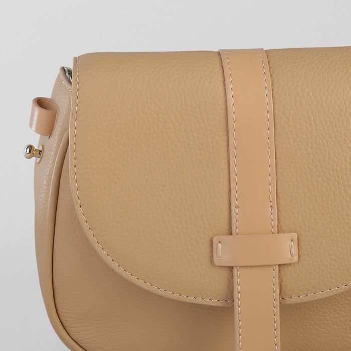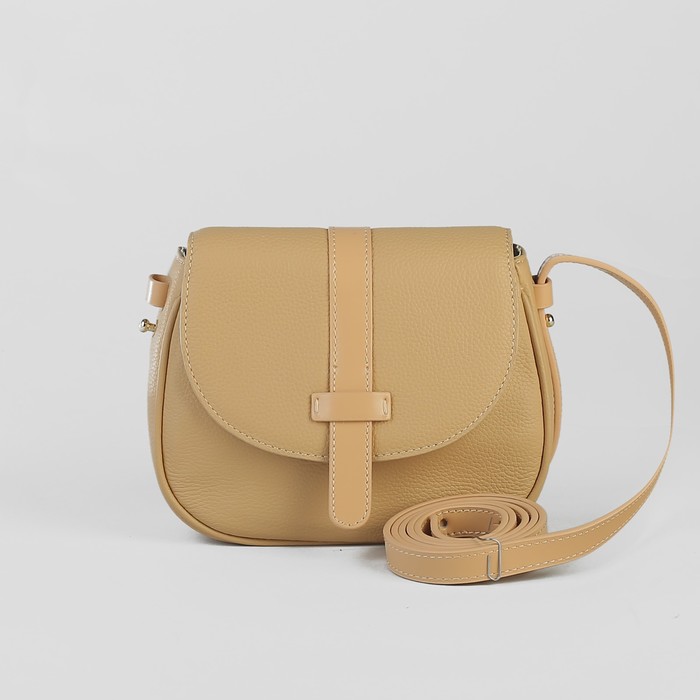 Сумка женская, отдел на клапане, длинный ремень, цвет бежевый