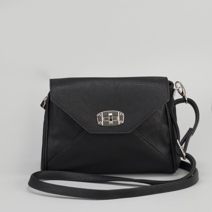 Сумка женская, отдел на клапане, наружный карман, длинный ремень, цвет чёрный