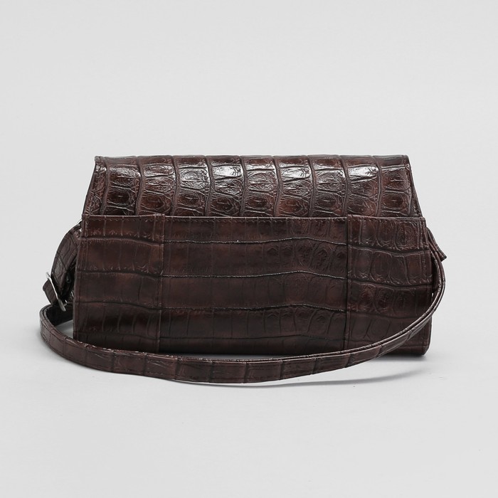 Сумка женская, отдел на клапане, регулируемый ремень, крокодил, цвет тёмно-коричневый