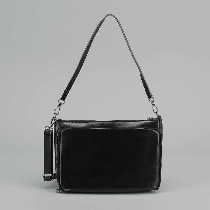 Сумка женская, отдел на молнии, 2 наружных кармана, цепь, длинный ремень, цвет чёрный