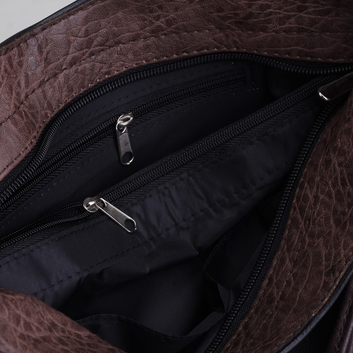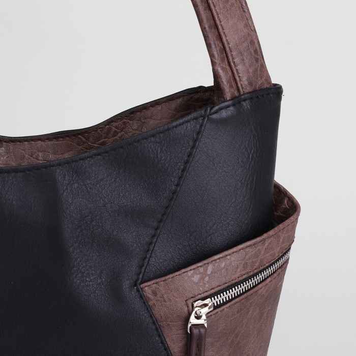 Сумка женская, отдел на молнии, 2 наружных кармана, цвет чёрный/коричневый