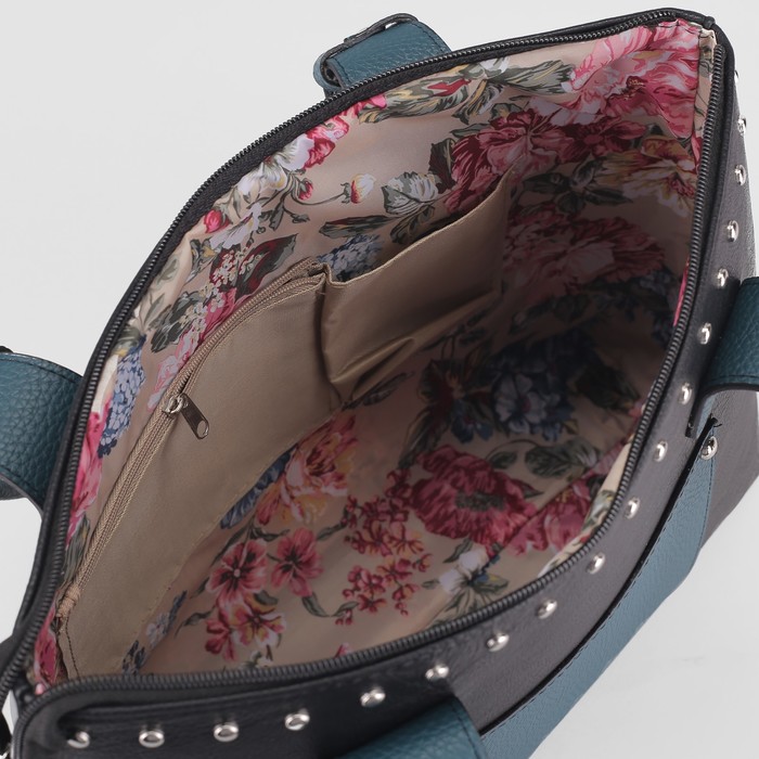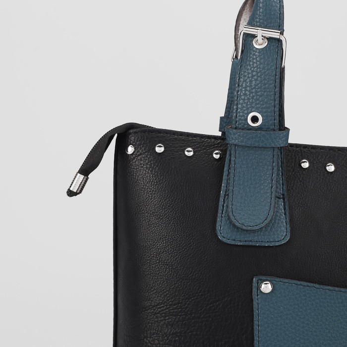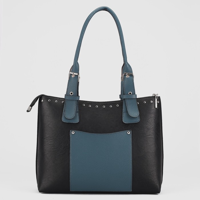 Сумка женская, отдел на молнии, 2 наружных кармана, цвет чёрный/морской волны