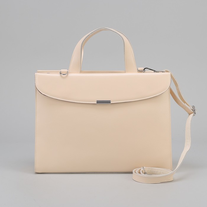 Сумка женская, отдел на молнии, 2 наружных кармана, длинный ремень, цвет бежевый