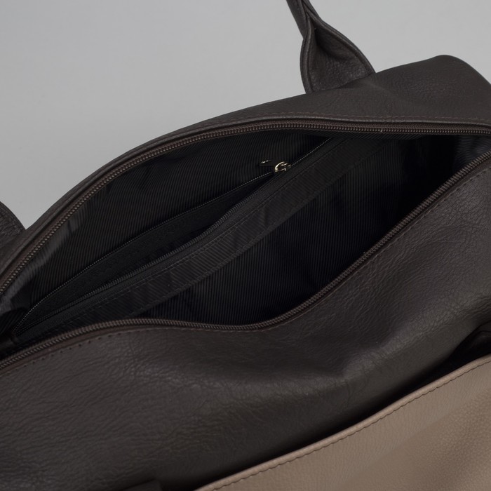Сумка женская, отдел на молнии, 2 наружных кармана, длинный ремень, цвет бежевый/коричневый