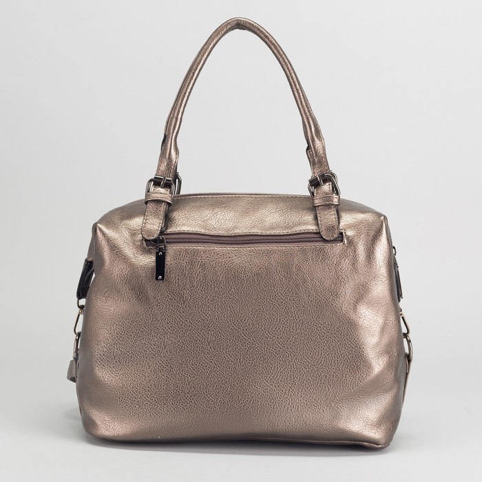 Сумка женская, отдел на молнии, 2 наружных кармана, длинный ремень, цвет бронзовый