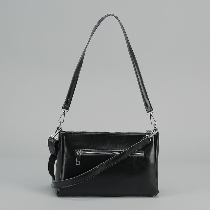 Сумка женская, отдел на молнии, 2 наружных кармана, длинный ремень, цвет чёрный