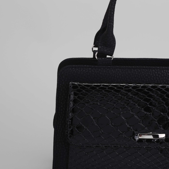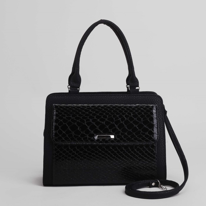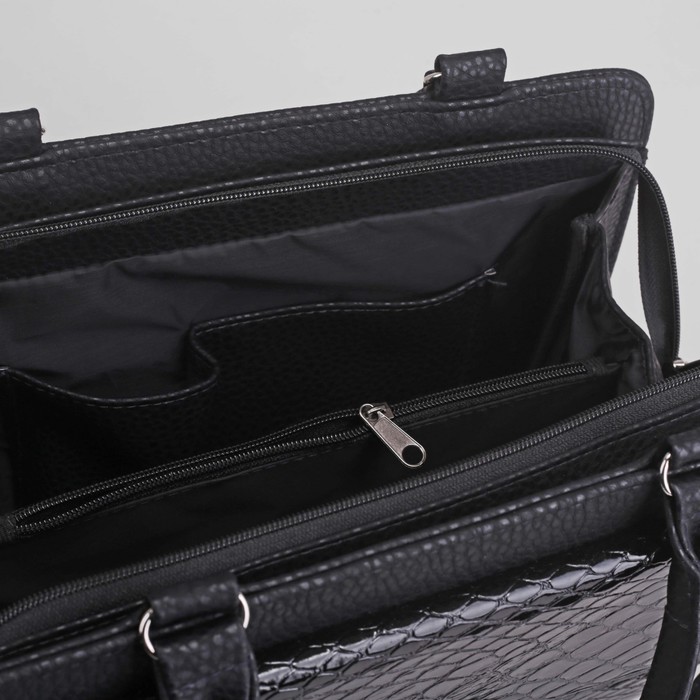 Сумка женская, отдел на молнии, 2 наружных кармана, длинный ремень, цвет чёрный