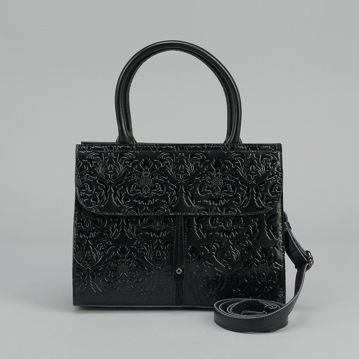 Сумка женская, отдел на молнии, 2 наружных кармана, длинный ремень, цвет чёрный