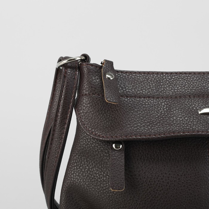 Сумка женская, отдел на молнии, 2 наружных кармана, длинный ремень, цвет коричневый