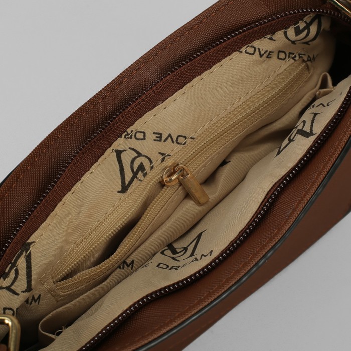 Сумка женская, отдел на молнии, 2 наружных кармана, длинный ремень, цвет коричневый
