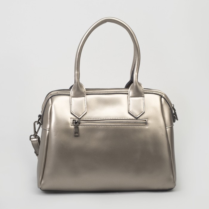 Сумка женская, отдел на молнии, 2 наружных кармана, длинный ремень, цвет серебристый