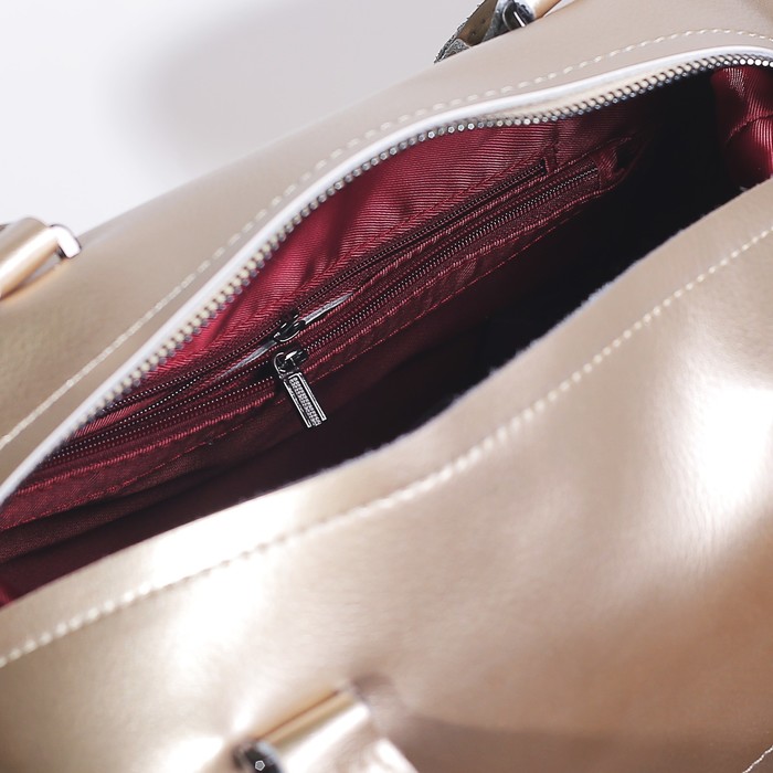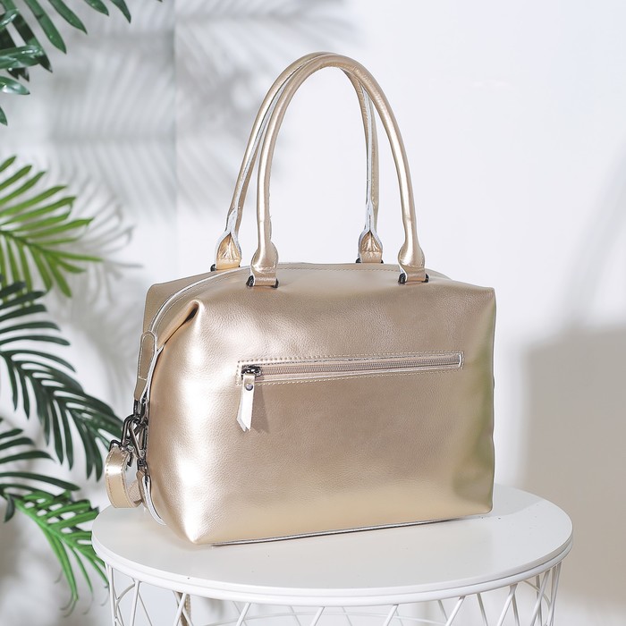 Сумка женская, отдел на молнии, 2 наружных кармана, длинный ремень, цвет золотой