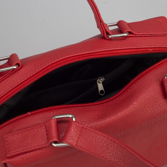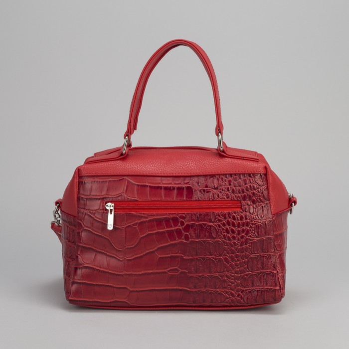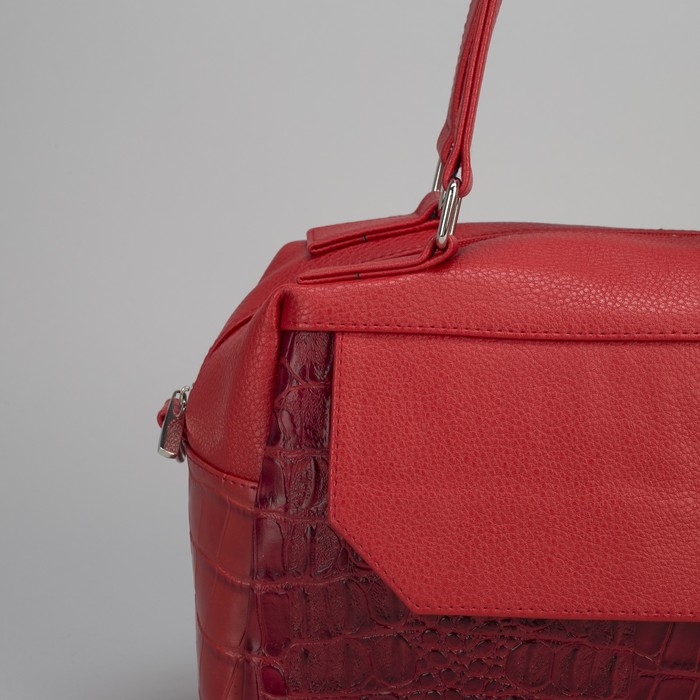 Сумка женская, отдел на молнии, 2 наружных кармана, длинный ремень, крокодил, цвет красный