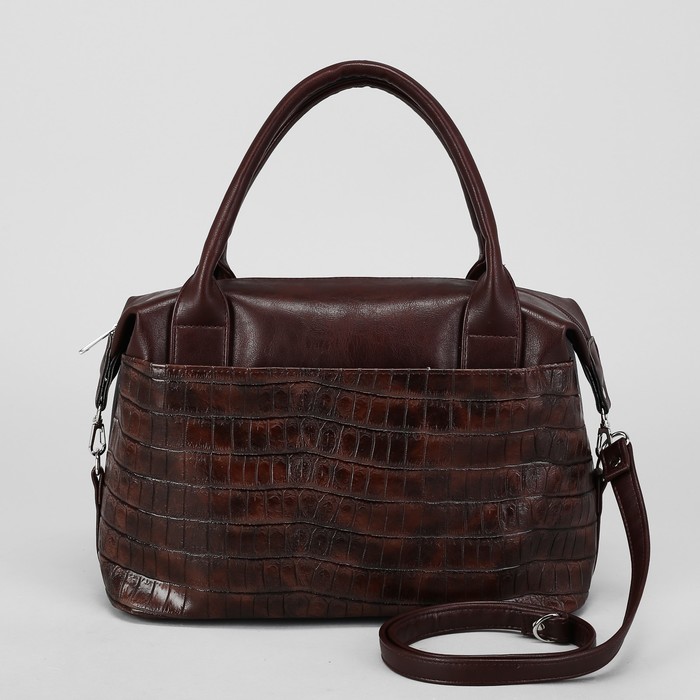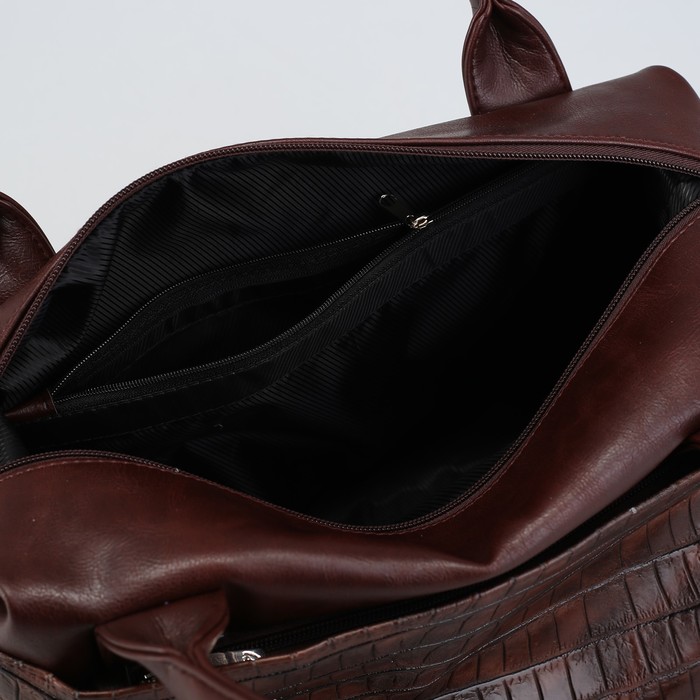Сумка женская, отдел на молнии, 2 наружных кармана, длинный ремень, рыже-коричневый крокодил