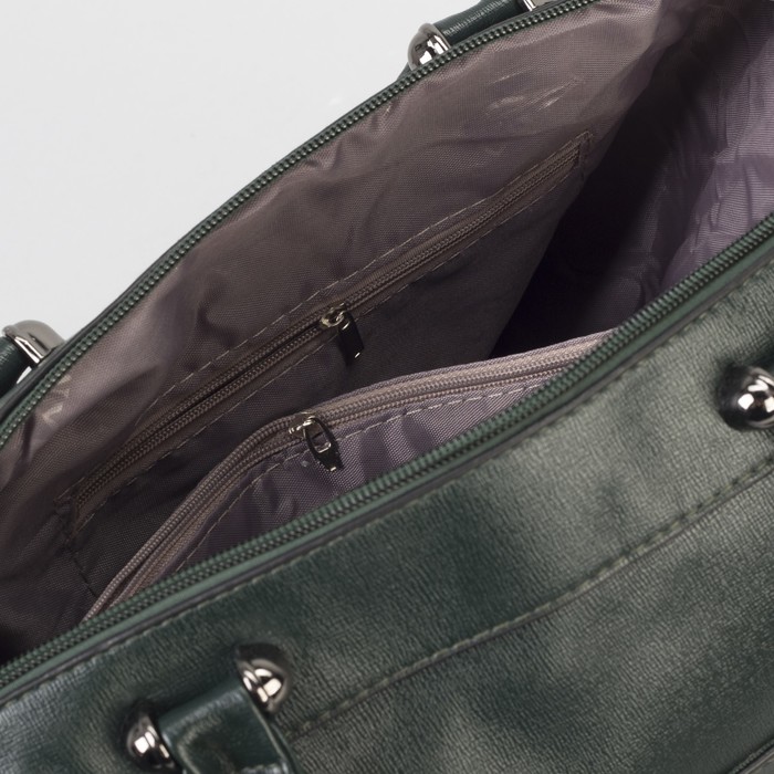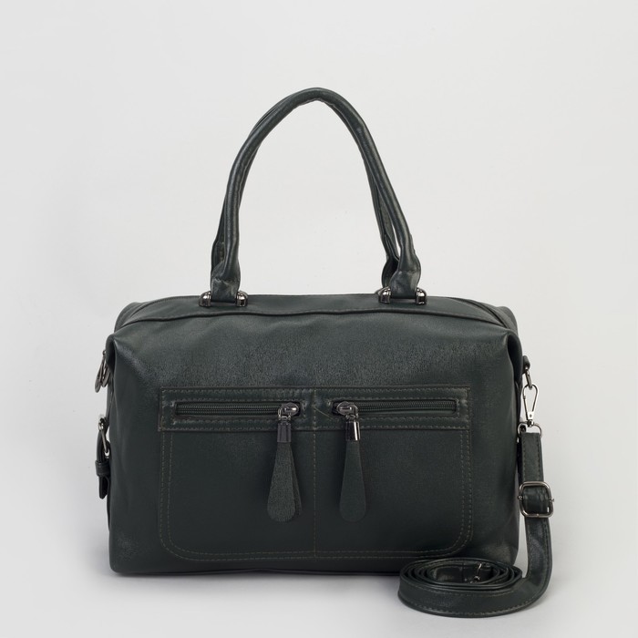 Сумка женская, отдел на молнии, 3 наружных кармана, длинный ремень, цвет зелёный