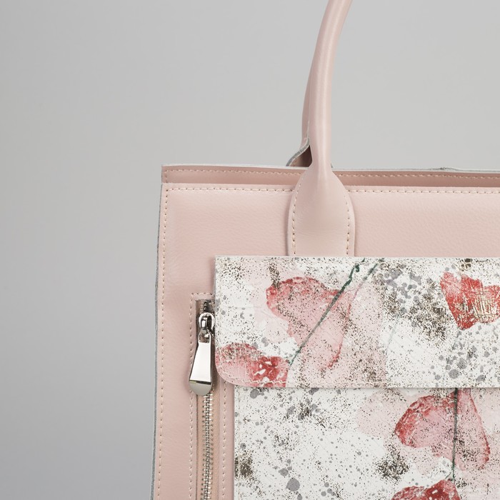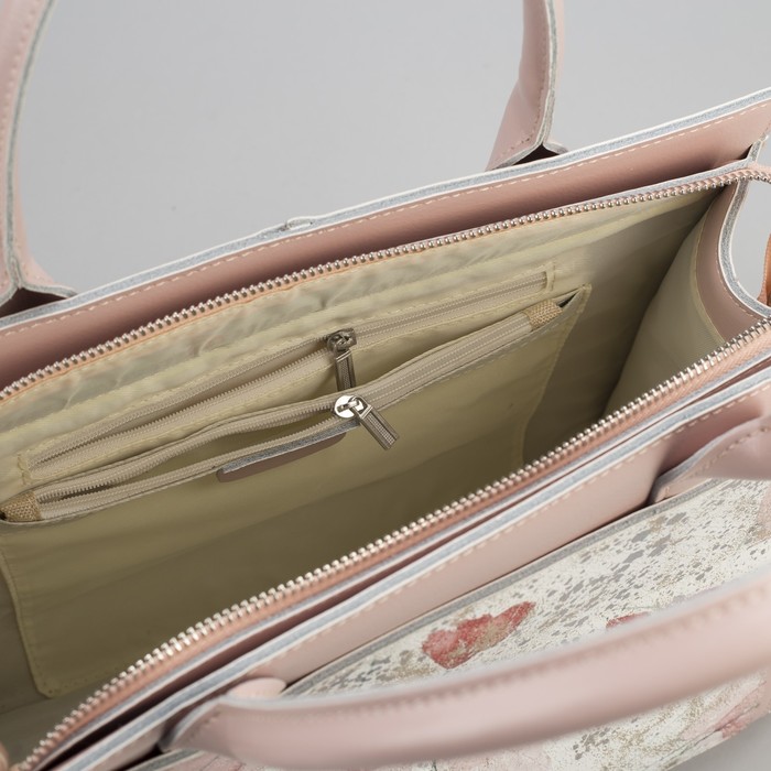 Сумка женская, отдел на молнии, 4 наружных кармана, длинный ремень, цвет пудровый